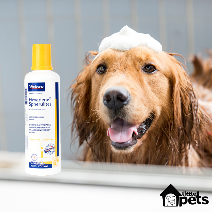 Modo de uso: Agite el producto antes de usar. Aplique Hexadene Spherulites sobre el pelaje previamente mojado, dando masaje vigoroso en todo el cuerpo del animal hasta formar abundante espuma. Espere de 10 a 15 minutos antes de enjuagar perfectamente. Repita todo el procedimiento.